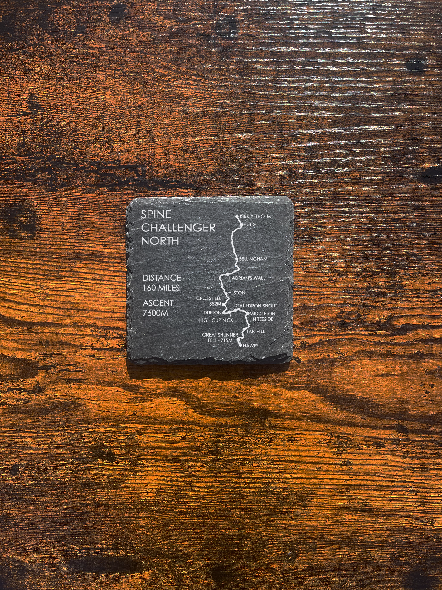 Bring the Spine Challenger North to your coffee table with our route slate coaster.